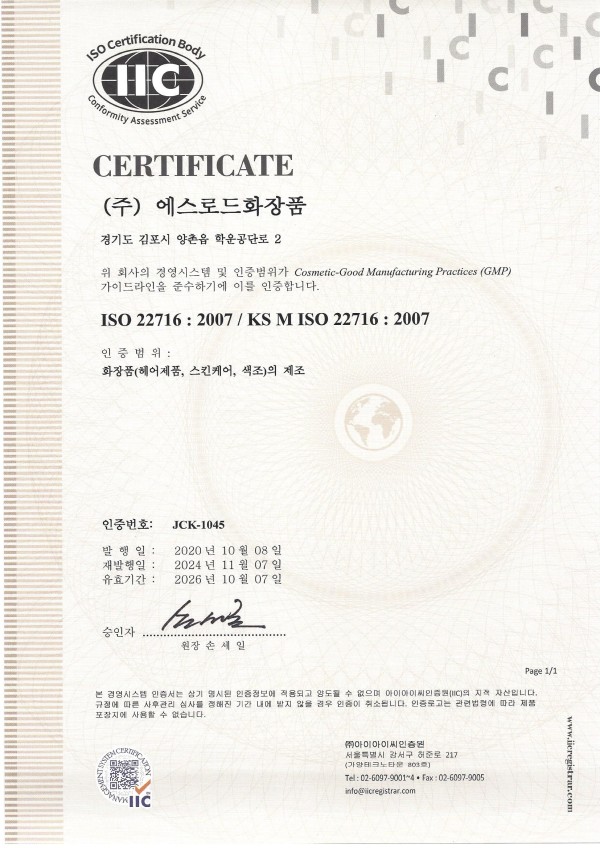 ISO 22716 인증서(에스로드화장품) 2024-2026 페이지 정보 작성자 YESROAD 댓글 0cases 조회 108times 작성일 25-06-27 11:44 LIST 본문 ISO 22716 인증서(에스로드화장품) 2024-2026 이전글ISO 22716 인증서(에스로드화장품) 2024-2026 25.06.27 다음글ISO 2716 2007 (GMP) 2023 25.06.27