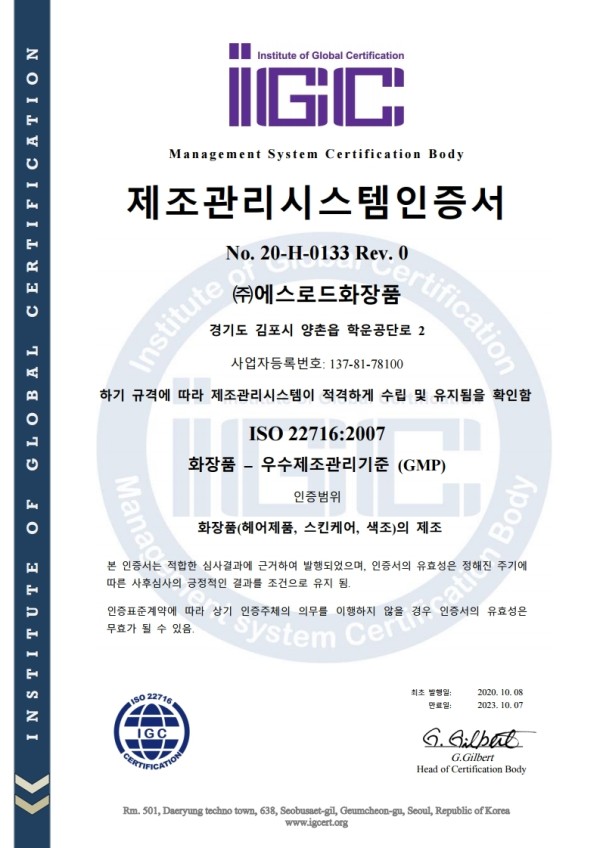 ISO 2716:2007 (GMP) 페이지 정보 작성자 YESROAD 댓글 0건 조회 84회 작성일 25-06-27 11:34 목록 본문 ISO 2716:2007 (GMP) 이전글2019. ISO(한) (주)에스로드화장품 25.06.27 다음글ISO 2716:2007 (GMP) 25.06.27 댓글 0 댓글목록 등록된 댓글이 없습니다.
