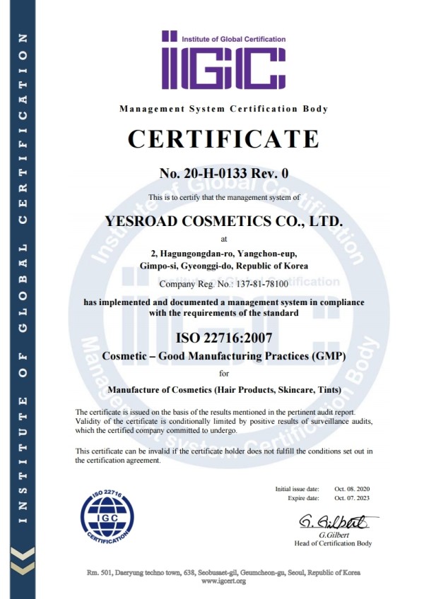 ISO 2716:2007 (GMP) 페이지 정보 작성자 YESROAD 댓글 0건 조회 83회 작성일 25-06-27 11:32 목록 본문 ISO 2716:2007 (GMP) 이전글ISO 2716:2007 (GMP) 25.06.27 다음글ISO 22716 인증서(에스로드화장품) 2020 25.06.27 댓글 0 댓글목록 등록된 댓글이 없습니다.